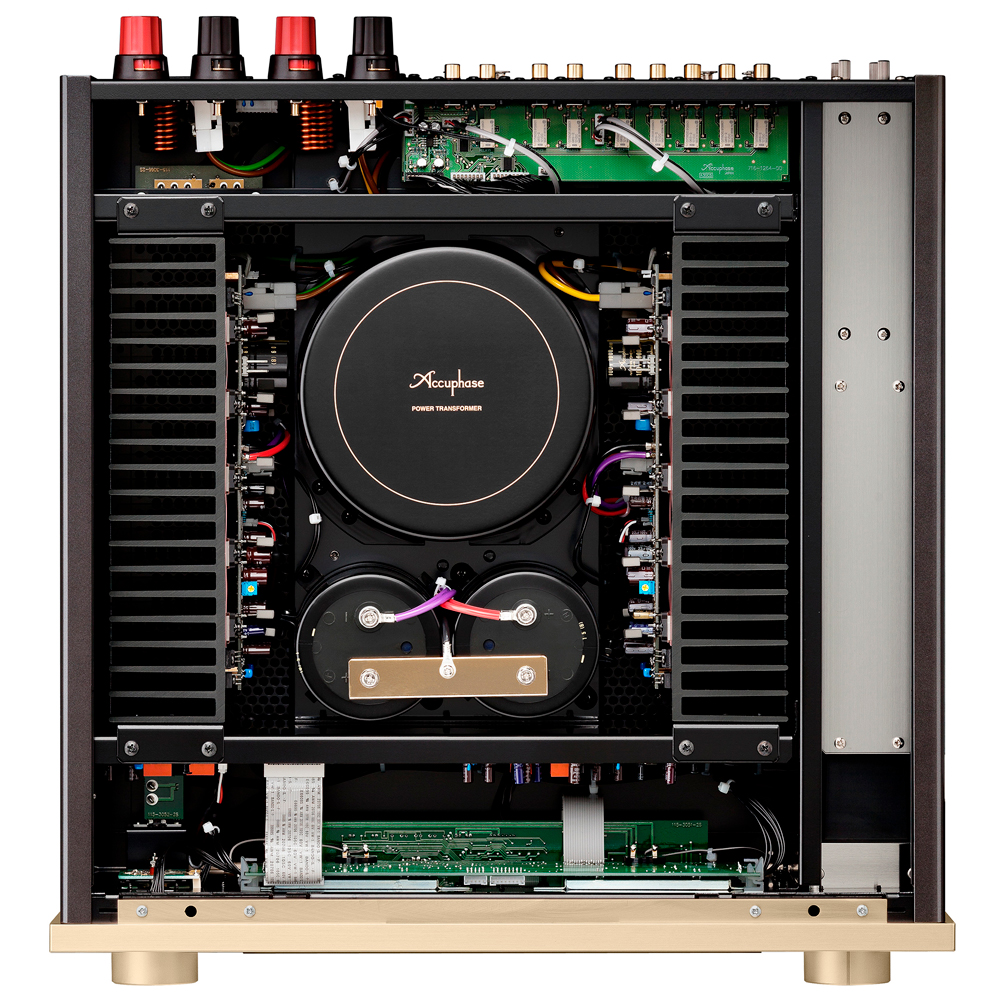 Секция усилителя мощности построена как современный измерительный усилитель с полностью симметричной схемой сигнального тракта. В Accuphase Е-5000 применена технология ANCC (Accuphase Noise Cancelling Circuit) и обратная связь по току, которые обеспечивают превосходное, чистое и прозрачное звучание. Массивный тороидальный экранированный трансформатор с двумя независимыми обмотками и два массивных конденсатора ёмкостью по 40000 мкф обеспечивают все цепи этого усилителя чистым питанием. Он оснащён мощными биполярными транзисторами включёнными в параллель с низким импедансом. В каждом канале установлено по пять транзисторов включённых в параллель. Усилитель имеет полностью симметричную схему. Обратная связь каскадов по току даёт прекрасные фазовые характеристики.