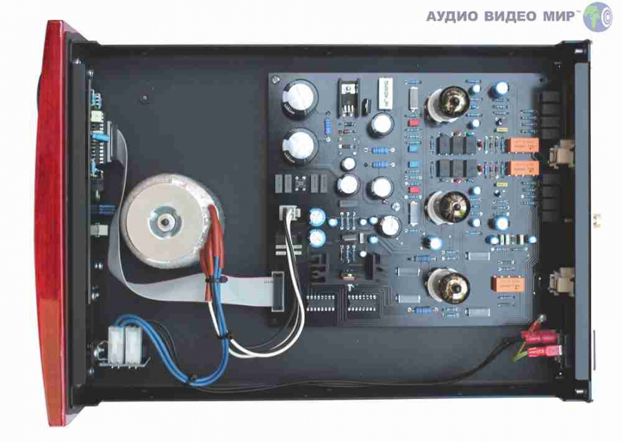 Чтобы поддержать это, у конструкции есть экранированный силовой трансформатор с увеличенным размером, чтобы уменьшить помехи. Массивные высокопрочные металлизованные полипропиленовые конденсаторы, управляющие контурами аудиосигнала. Входной каскад MM использует малошумящий JFet с отдельным регулируемым источником питания с расширенной фильтрацией для уменьшения помех и шума. Использование трубки ECC82 / 12AU7 на выходном каскаде дает этому устройству очень низкий выходной импеданс без потери сигнала.