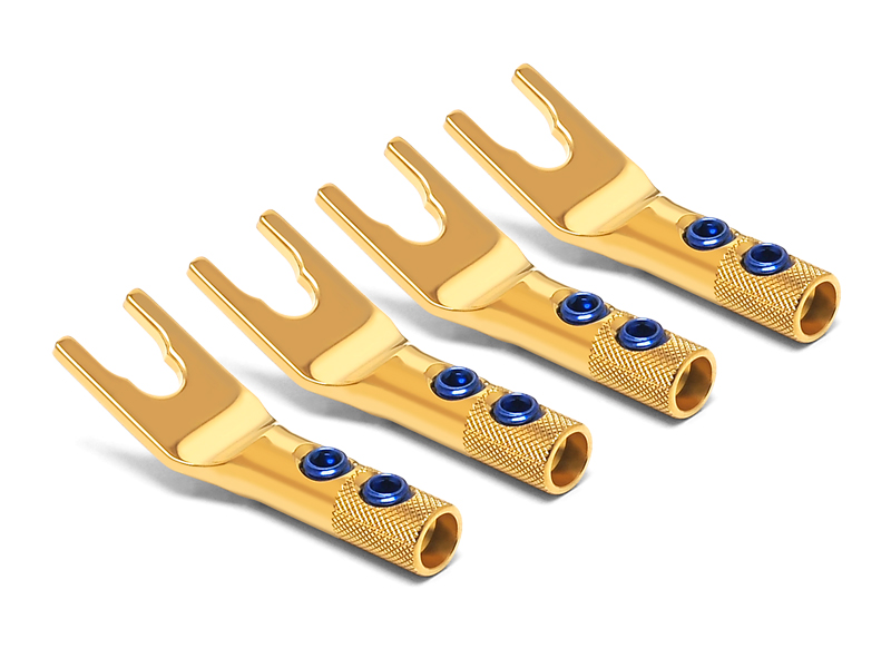 Spade Lug w/screw clamp Комплект (silver/gold plating). up tp 5.5sq. Cable. Комплект (4штуки)