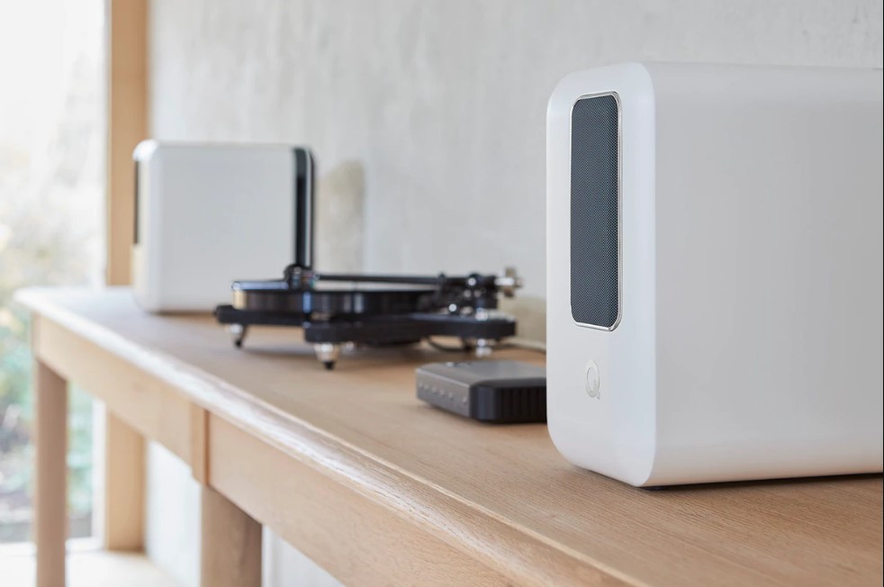 На задней стенке акустических систем расположены два регулятора: с помощью первого можно выбрать канал, который берет в обслуживание конкретная колонка — правый или левый. Вторым выполняется калибровка отдачи на басу в зависимости от расположения акустических систем в комнате. Трансляция музыкального материала идет через центральный модуль (хаб). Все источники подключаются именно к этому компоненту, в том числе и по беспроводным интерфейсам. Хаб поддерживает Ethernet, AirPlay 2 и Bluetooth. Кроме того, среди поддерживаемых технологий и интерфейсов Chromecast, Roon, Spotify Connect, HDMI ARC, оптический цифровой интерфейс и аналоговый стереофонический вход. Причем, последний может быть сконфигурирован как вход Phono для подключения напрямую проигрывателя виниловых пластинок, оснащенных головкой звукоснимателя с подвижным магнитом (MM). Через цифровые интерфейсы центральный блок готов принимать контент с разрешением вплоть до 32 бит / 192 кГц, правда, максимальное разрешение трансляции на акустические системы ограничено 24 бит / 96 кГц.