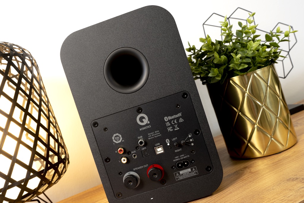 В качестве альтернативы в M20 можно использовать оптический либо коаксиальный цифровые входы. Аналоговый RCA-вход также представлен на задней панели ведущей колонки М20. Там же можно отыскать и выход на сабвуфер. Вместо подпружиненного разъема Q Acoustics поставила в M20 полноразмерные акустические разъемы.