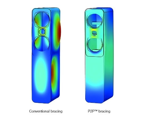 - Внутренняя распорка Point-2-PointTM (P2P) придает жесткость корпусу, сводя к минимуму низкочастотные вибрации, фокусируя стереоизображение и улучшая звуковую сцену.
