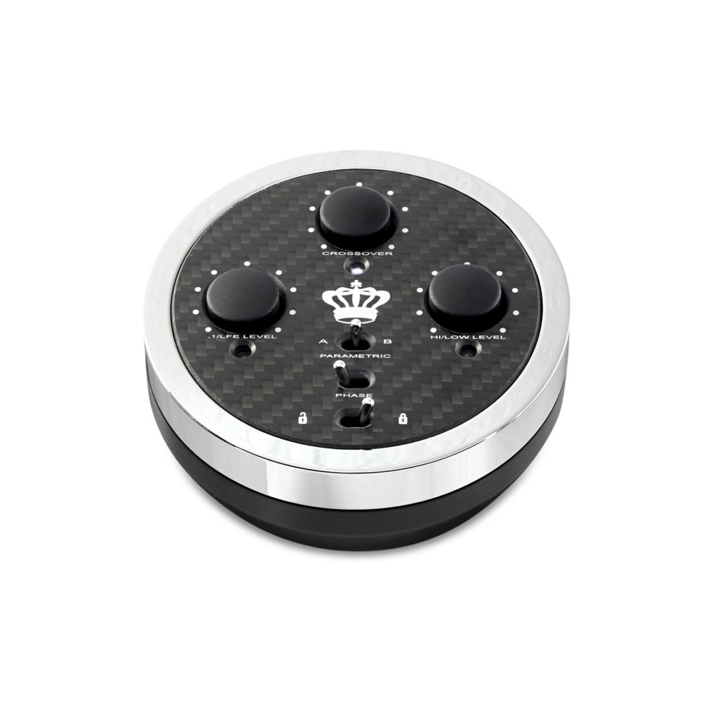 Ниже расположены три симпатичных металлических тумблера, отвечающих за важнейшие функции настройки. В нижней части находится переключатель включения/выключения пульта ДУ. Он расположен как можно дальше от дороги и остается включенным после включения, так и используется во время настройки без возможности случайного выключения. В центре находится регулятор фазы. Он используется только на начальном этапе для определения правильной фазы 0 или 180 градусов. Кроме того, сверху расположен двойной параметрический эквалайзер, обозначенный буквами A и B, позволяющий получить самые ровные и глубокие басы, а на другом конце диапазона низких частот — тонкую настройку поведения кроссовера. Это позволяет добиться идеального сочетания сабвуфера с основными колонками, а все остатки гула и резонанса, возникающие в помещении, можно аккуратно обрезать.