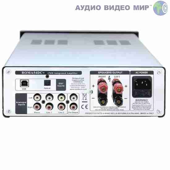 Звук полный, воздушный, динамичный, живой и невероятно музыкальный. Чистота человеческих голосов и точность инструментов захватывают дух. Roma54DC + со своим 170 Вт каждым каналом обеспечивает быструю динамическую презентацию без сухости и бесплодия других конструкций класса D. Это связано с конкретной конфигурацией входного каскада и естественным звуком, который он производит. Разрешение, прозрачность и подробный звук выше и выше того, что можно было бы ожидать от усилителя. Рома 54DC + имеет тип USB «B», DSD 5,6 МГц и оптический вход. 32-битное разрешение дает вам фантастическую звуковую сцену и прекрасное воспроизведение звука. Phono Stage сочетает в себе исключительное качество звука и уникальные функции.