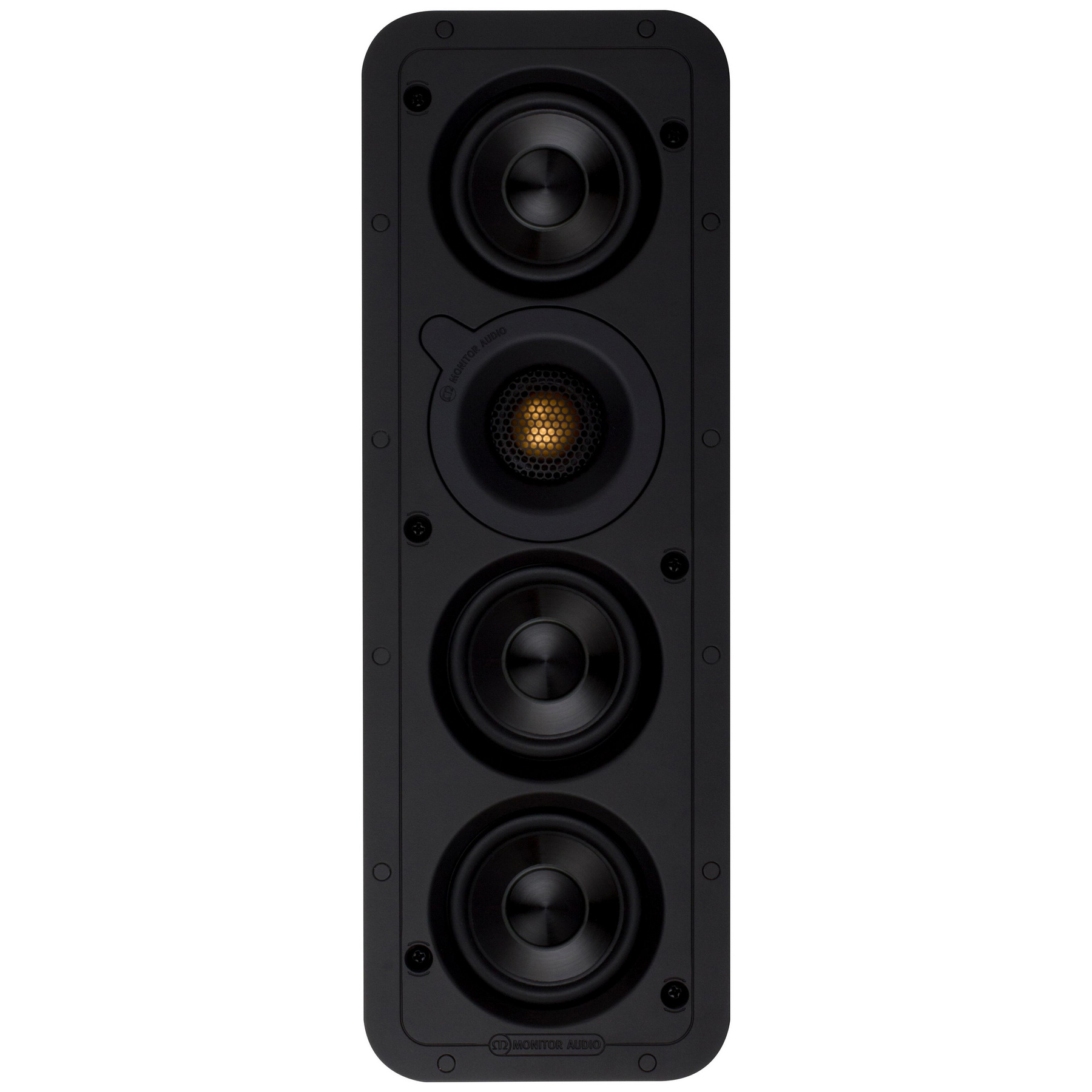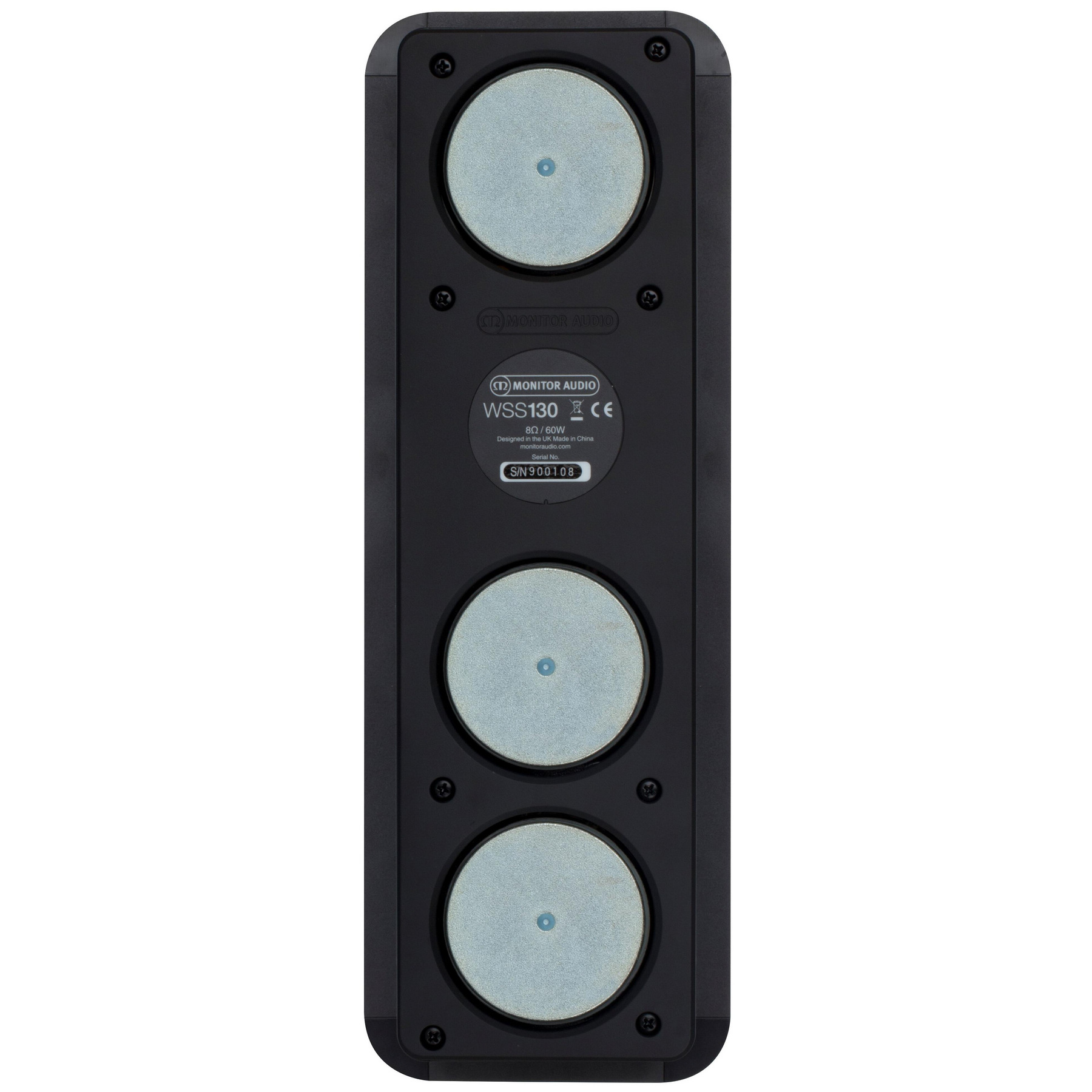 Секрет Monitor Audio WSS130 состоит в том, что она оснащена тремя басовыми динамиками диаметром 3 дюйма с фирменными диффузорами MMPII. Диафрагмы басовиков имеют небольшой вес и высокую жесткость, и способны быстро перемещаться для точного воспроизведения звука. Такое решение позволило получить насыщенные и динамичные басы при сохранении небольших размеров колонки (ширины и глубины), обеспечивших ее удобный монтаж и привлекательный внешний вид. Твитер, расположенный между басовиками для выравнивания общей диаграммы направленности в горизонтальной и вертикальной плоскостях, имеет диаметр 25 мм и выполнен по технологии C-CAM с внешним золотым покрытием. Колонка оснащена разделительным фильтром, выполненным на базе отборных компонентов, а для подключения к усилителю в ней используются простые позолоченные нажимные клеммы.